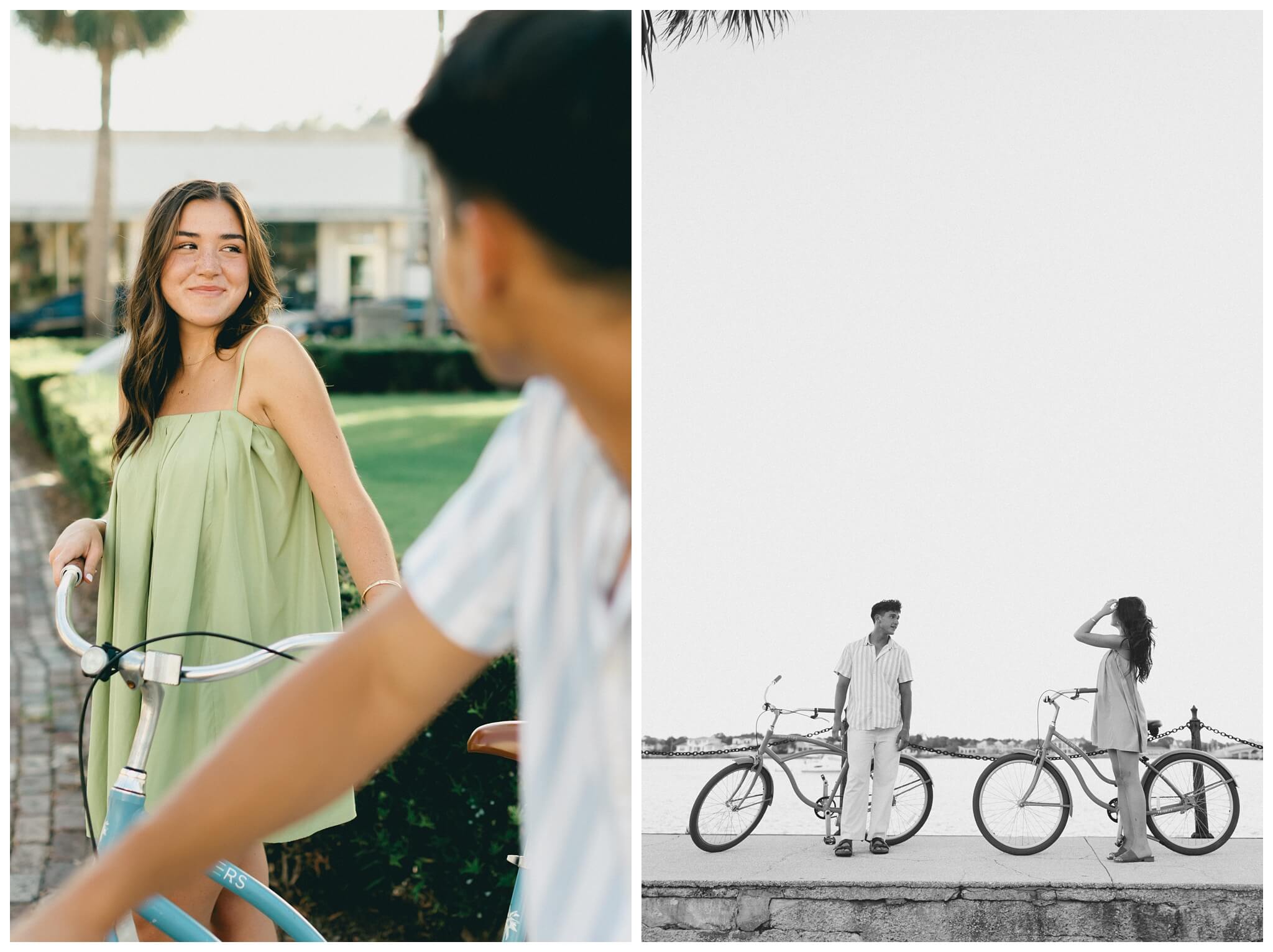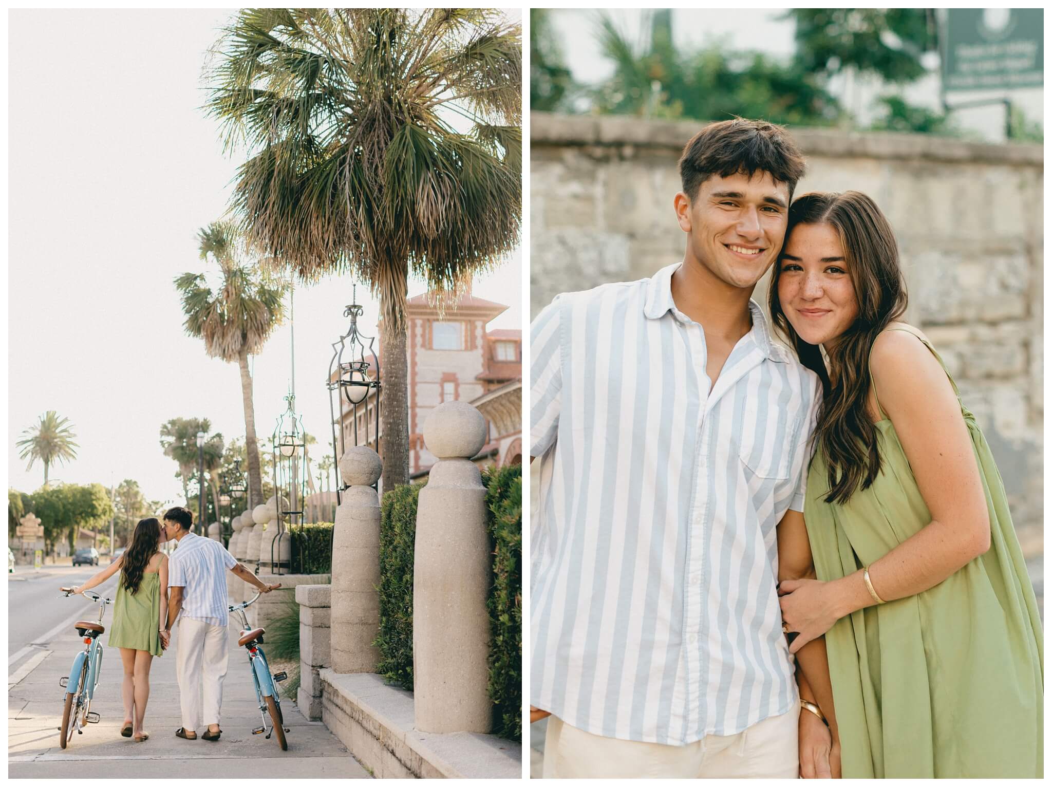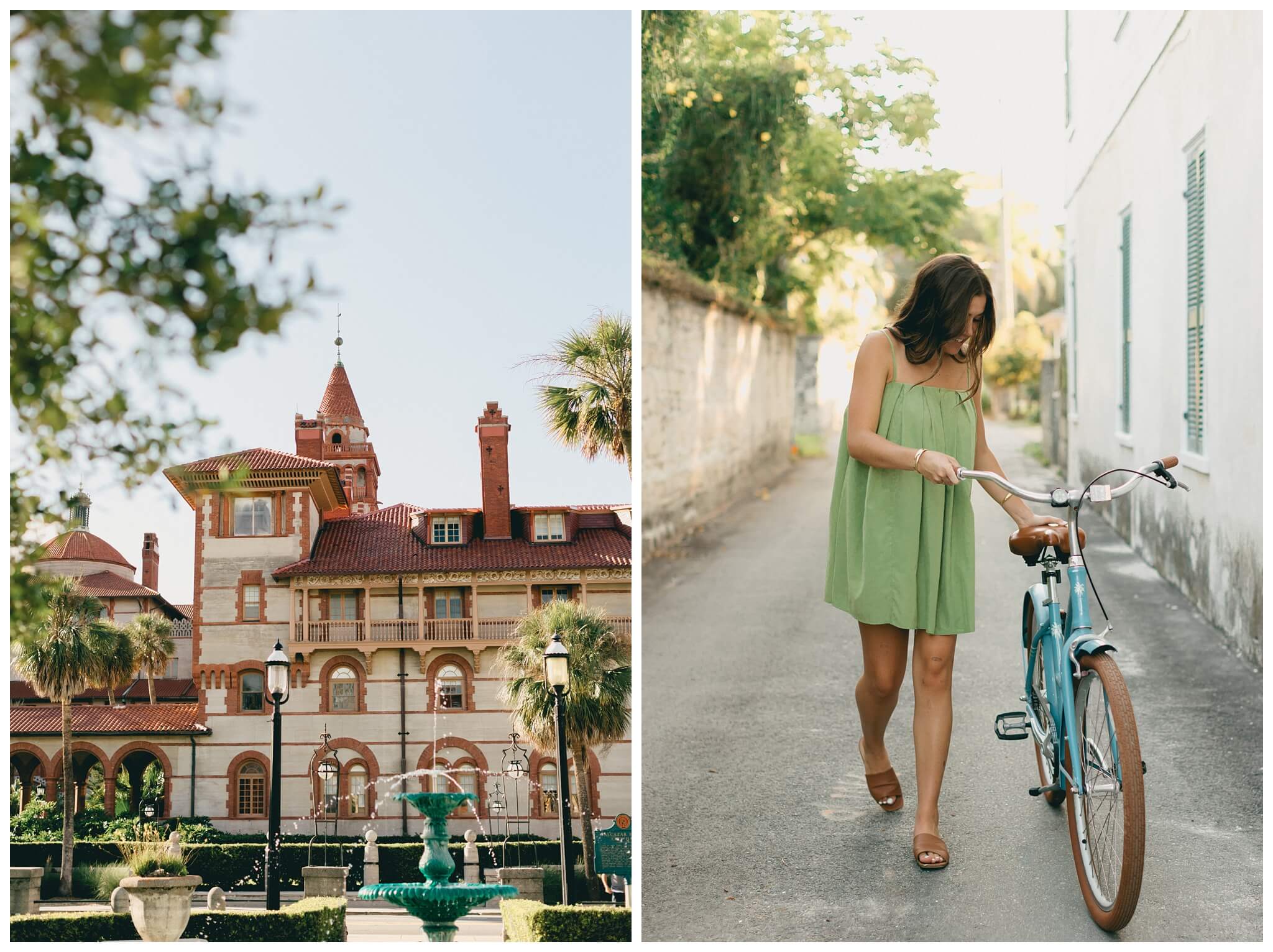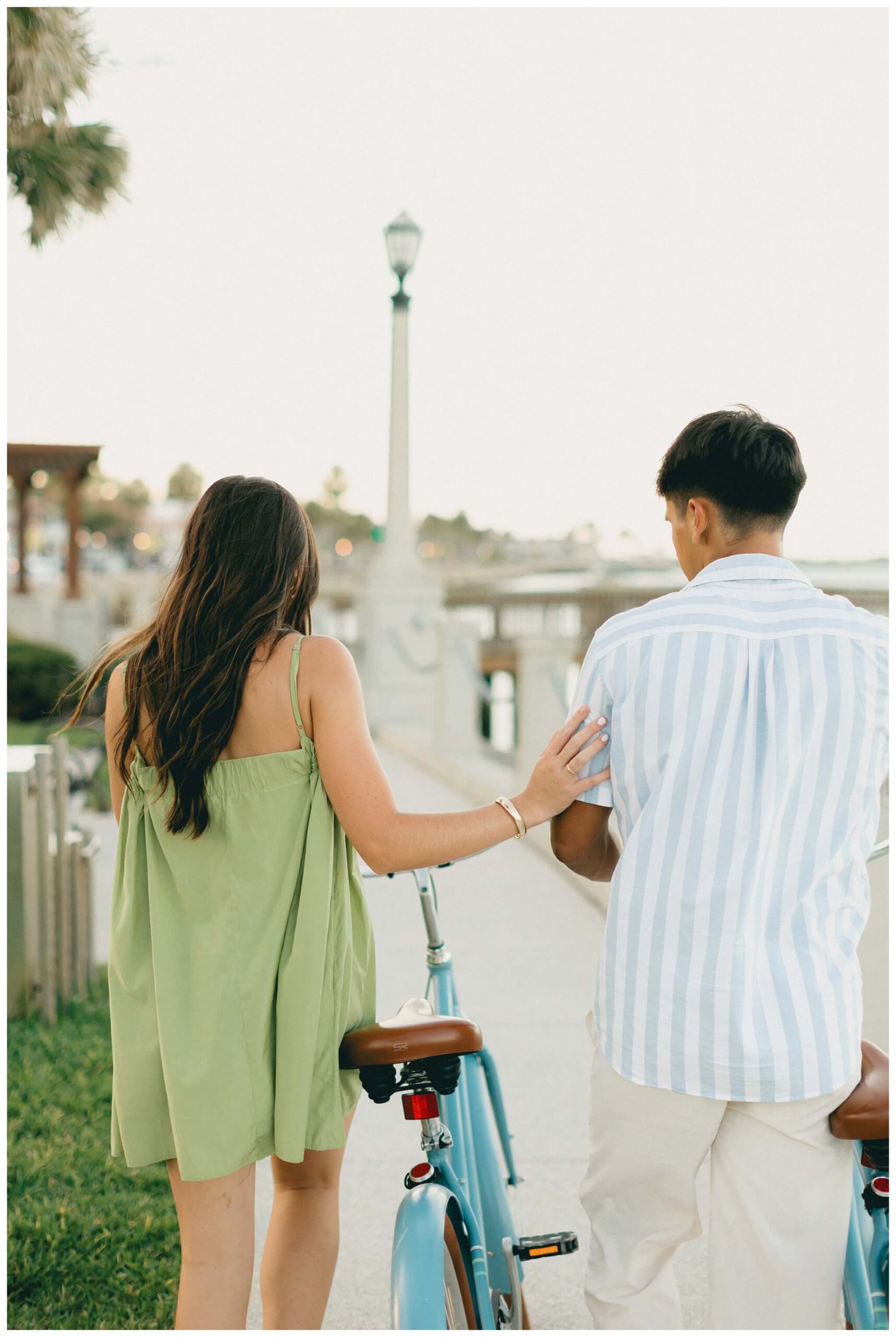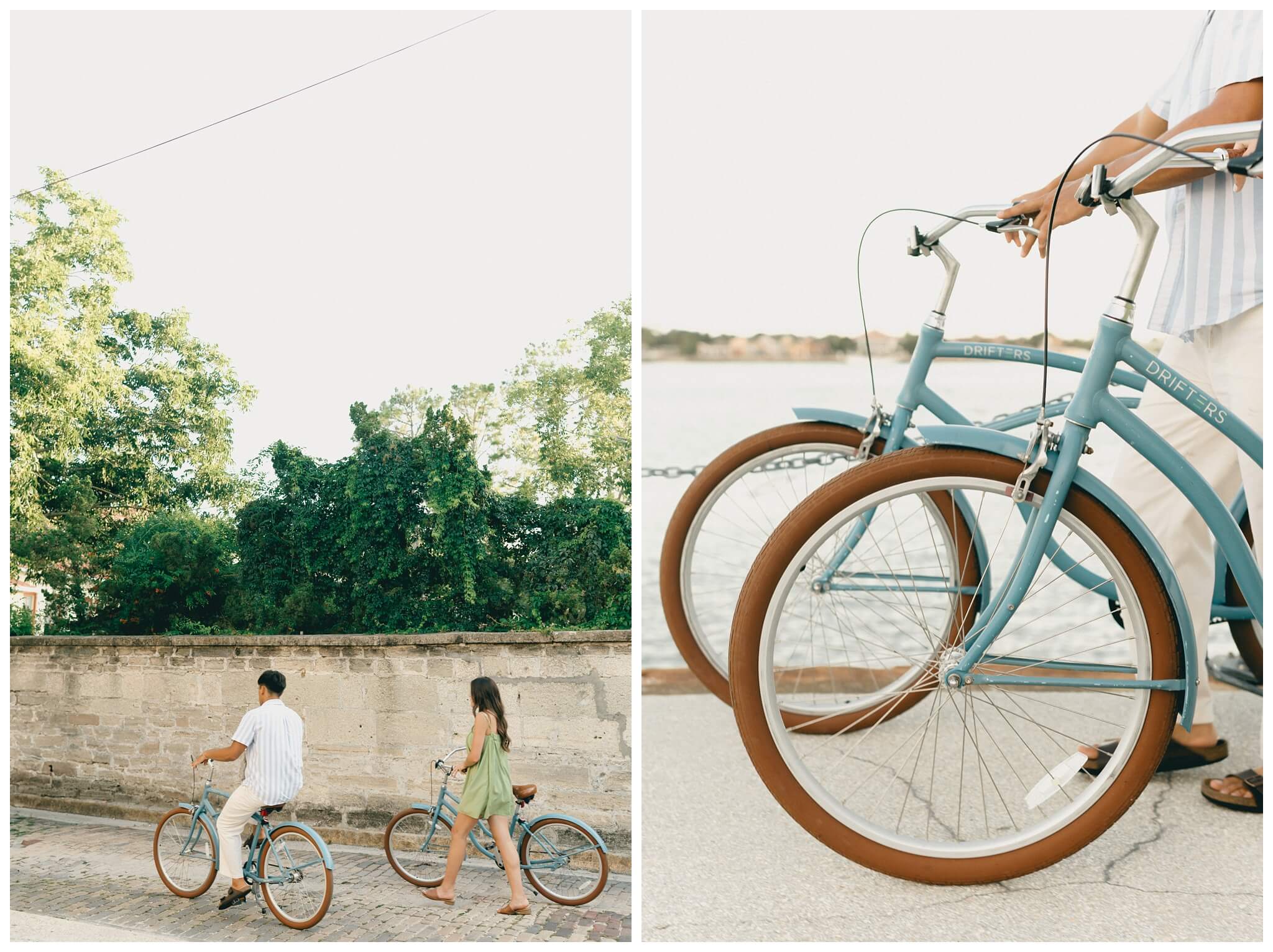 The sounds of the street slowly faded into the background as the baby-blue bicycles cruised off down the historic alleys of St Augustine. Catalina, leading the way, turned to laugh back at Noah and beckon him to join her. He was completely blown away by the perfection of the moment; the sunlight perfectly catching her hair as the wind blew though creating a halo of light around her. He quickly caught up to her, and as they continued their tour of the town, they both found themselves thinking of the not too distant future when they would be able to go on bike rides like this every day as husband and wife.