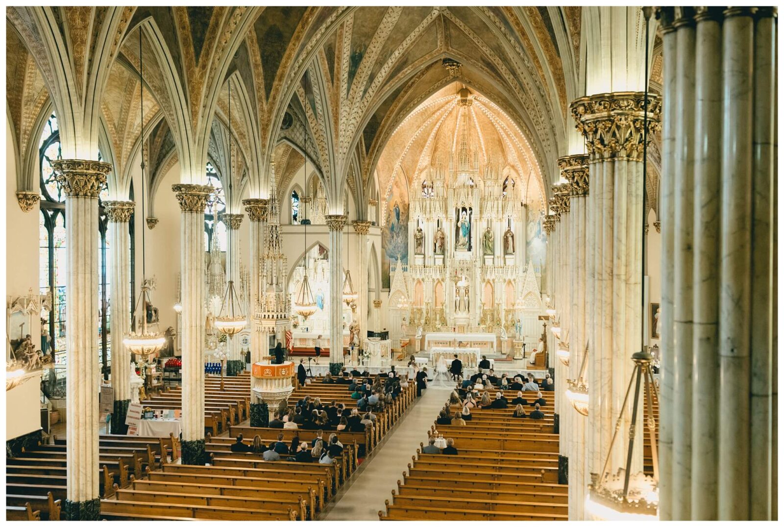 Almost 80 years ago, a film was released that would forever change the romance genre: Casablanca. Little did Hollywood know that almost a century later, their film would influence and inspire the love of Kathryn and Ryan and weave its way through the entire story of their wedding day. The Westin Hotel in the heart of Detroit housed both sides of the bridal party as they spent the morning preparing for the celebration ahead. Both the bride and groom were treated to a very special visit by their son, William, whose joyful squeals and dapper fashion brought everyone around him to the verge of both laughter and tears. The Cathedral at Sweetest Heart of Mary, a staple of Detroit weddings, welcomed friends and family alike into its grand silhouette; prompting a sense of awe and wonder to wash over the guests as they all waited with baited breath for the bride to appear.