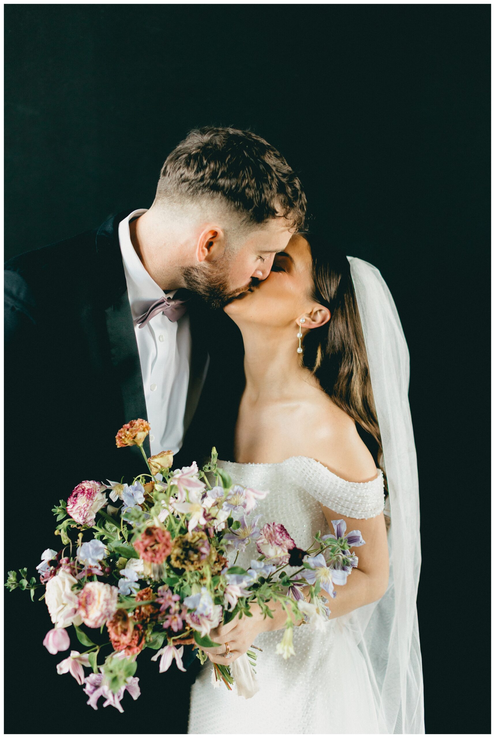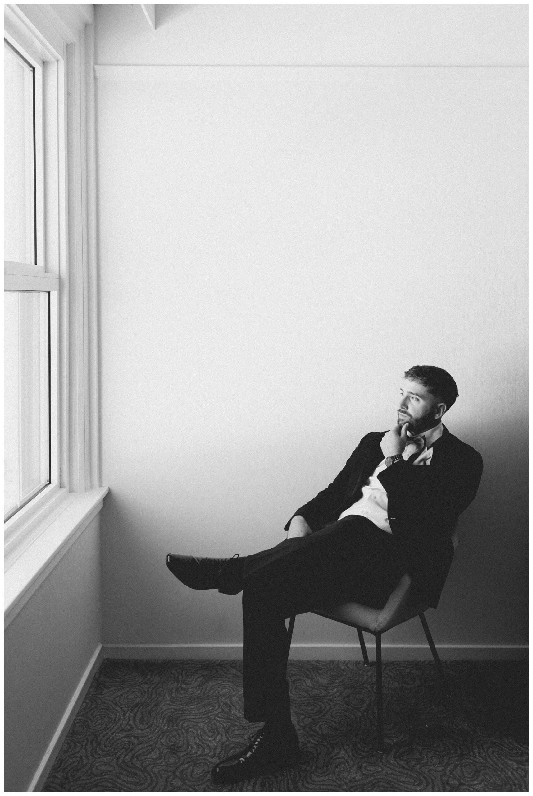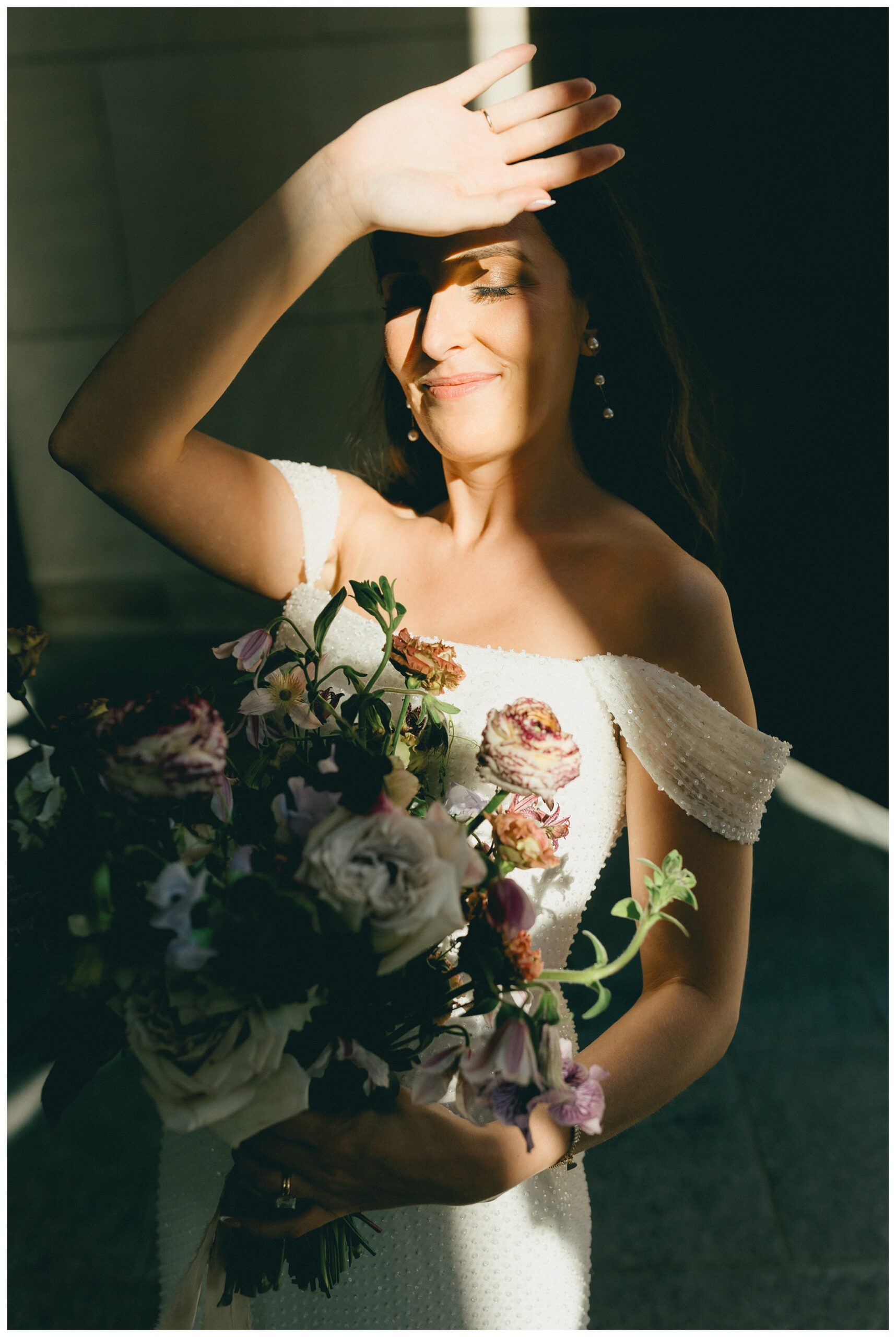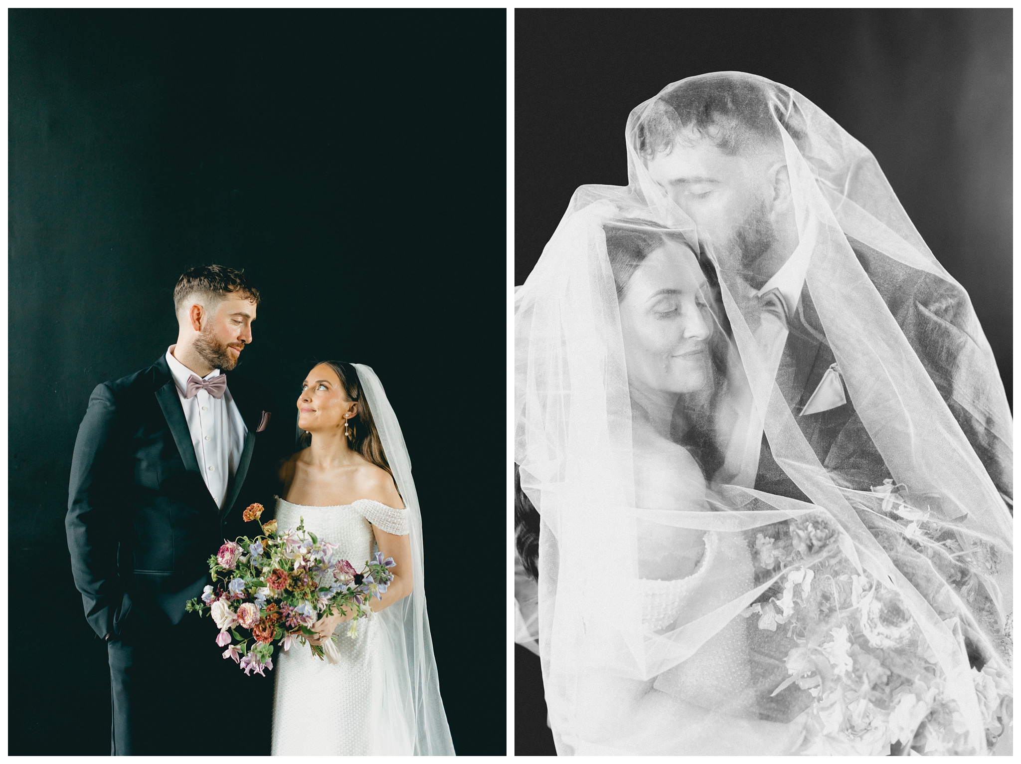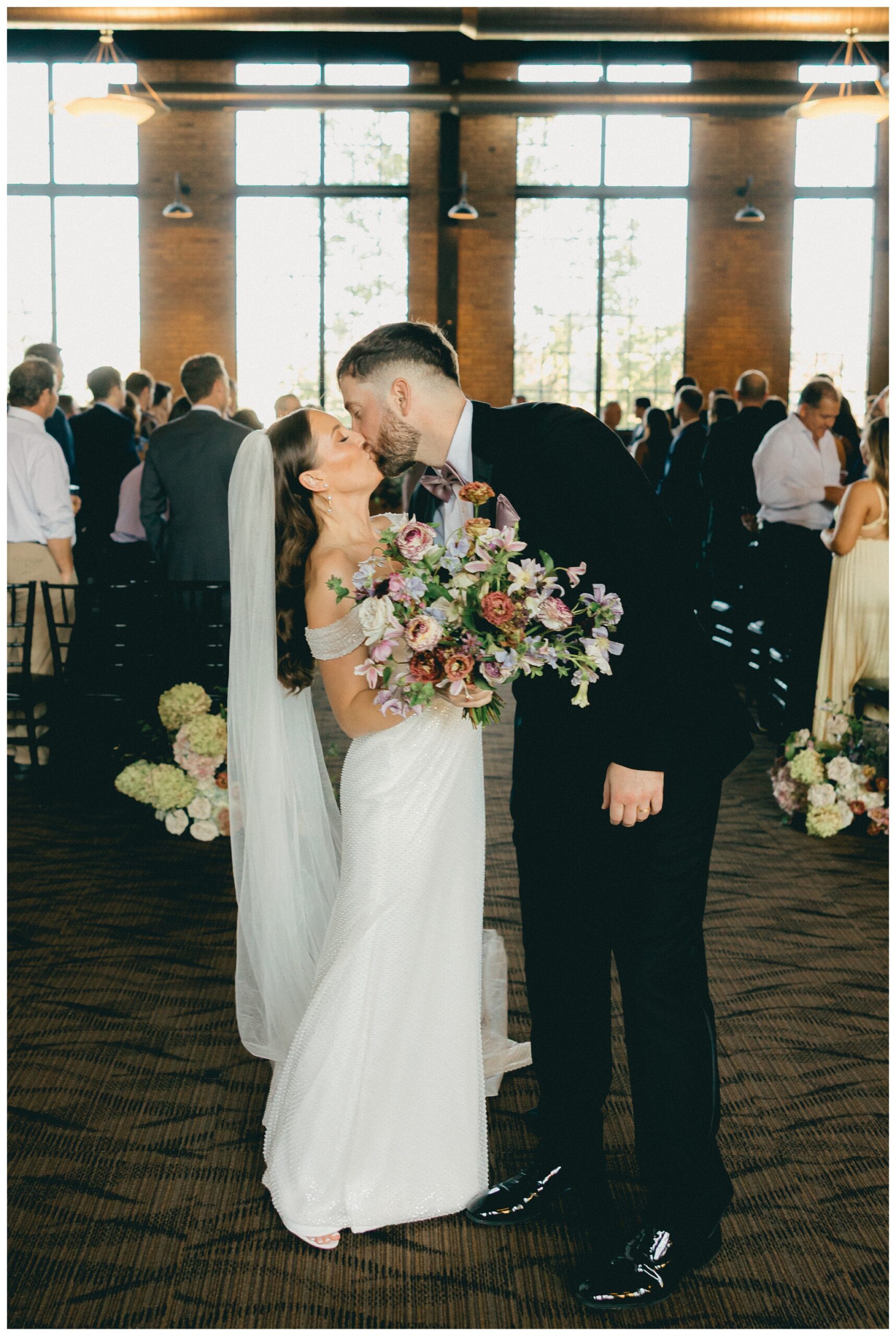 The sounds of the Art Prize Celebration floated up from the streets to the upper levels of the Grand Rapids skyline on the morning of Sarah and Jeff’s wedding. The Amway Grand Plaza, one of Grand Rapid’s finest hotels, provided exquisite rooms and elegant aesthetics for both Sarah and Jeff to prepare for the day, surrounded by those that they held dearest. Instead of waiting til later into the day, Sarah and Jeff had always wanted to get married as quickly into the day as possible, so after a quick ride over to New Vintage Place, the bridal party hid away as guests began to arrive for the ceremony. All eyes were on Sarah as her father escorted her down the aisle, right in the arms of the man who had kept mentioning her name all morning long in eager anticipation. Before they could even believe it, their friend and officiant Griffin was announcing them as Mr. and Mrs. Jeff Perry as they recessed down the aisle to the thunderous applause of the crowd. Sarah had always felt drawn to the dramatic ambiance of New Vintage Place, and a mini “studio session” in the middle of the wedding day provided some truly iconic portraits of both Sarah and her new husband. However, the architecture and charm of the city called to them as well, culminating with a second portrait session along the streets of Grand Rapids rounding out their time in front of the camera. Upon their return to NVP, Sarah and Jeff were greeted by their vision come to life in the reception space, all thanks to the vendor team led by In the Details Weddings. Warm purples mixed with dusty mauve in the florals, bringing a “soft autumn” aesthetic to the space before them. As dinner was served, both Sarah’s sister and Jeff’s best friend addressed the crowd, recounting tales and memories spent with Sarah and Jeff and reminding all in the room just how special the bride and groom were to everyone in attendance. As the music began and the dance floor started filling up, Sarah quietly slipped away, only to return in an iconic entrance with an outfit change that signaled to all that the party was just getting started.